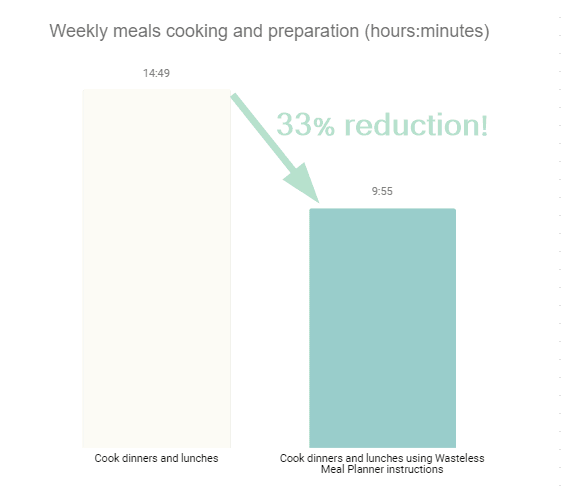 On average during a week, we expect it will take about 14-15 hours to prepare both dinner and lunch. However, by using batch cooking and meal prep strategies, we can reduce this time to 9-10 hours, about a 30% decrease. This not only helps us manage our time better but also makes meal preparation less daunting.